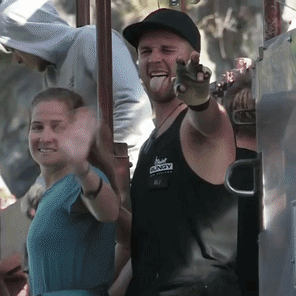 - Get on the platform. This is where the guy helping me was a true champ – yes, the guy with the tongue below. I started to hesitate and he told me the longer I waited the harder it would be, and all I had to do at that moment was get onto the platform. That was it. (And don’t look down!)